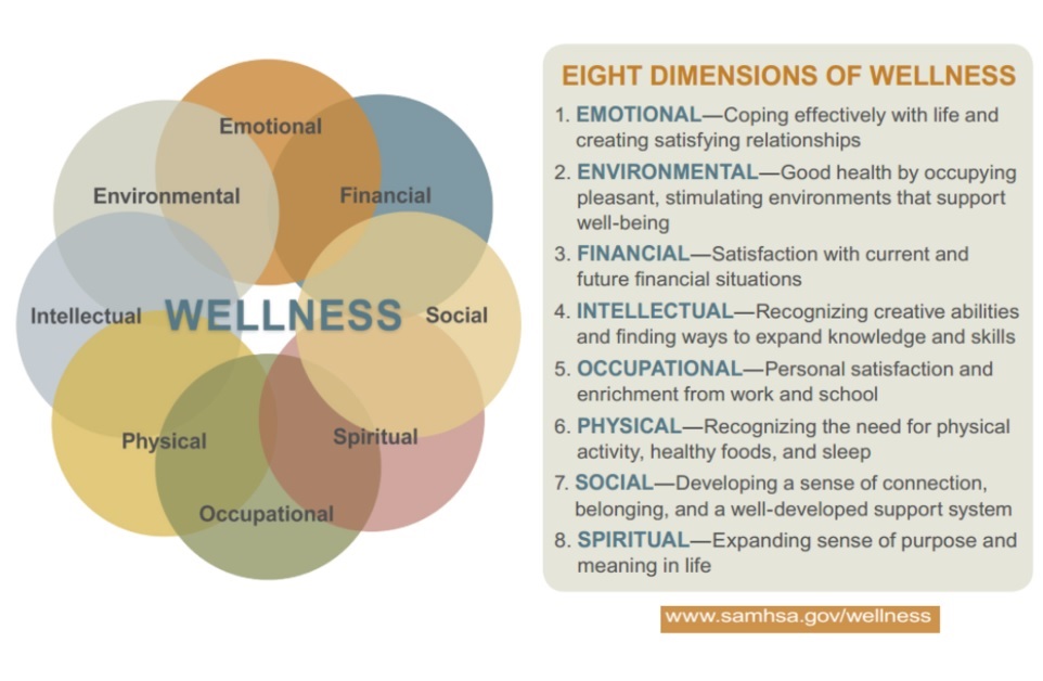 There are a multitude of approaches toward the path of self-improvement. We focus on the the 8 Dimensions of Wellness: Emotional, Spiritual, Intellectual, Physical, Environmental, Social, Occupational, and Financial.